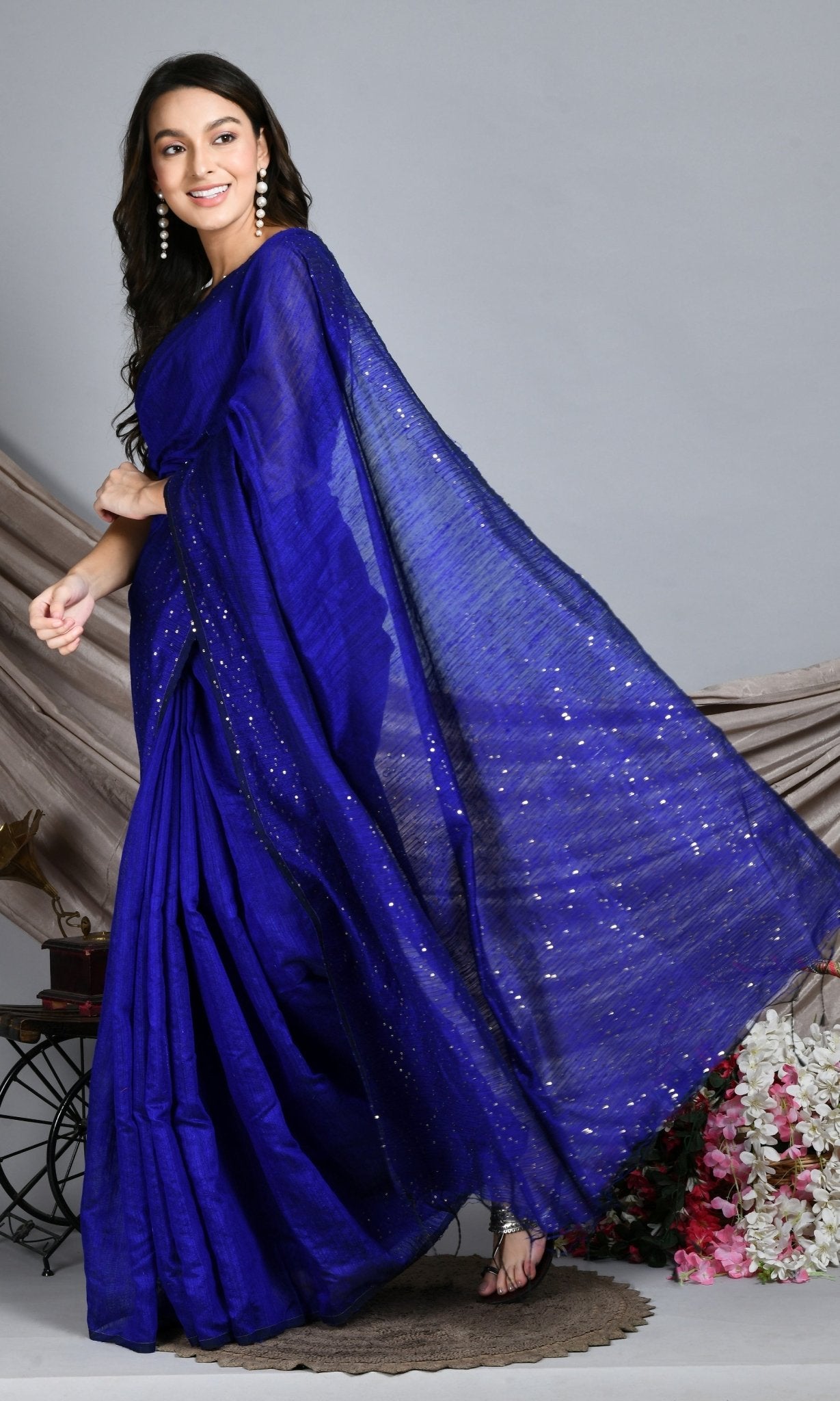 Description: Swapna Creation beautiful handwoven matka silk saree with sequins on border and pallu. The saree has its own blouse piece however you can add a contrast blouse to have a different look. The shine and soft feel of the fabric is just awesome.