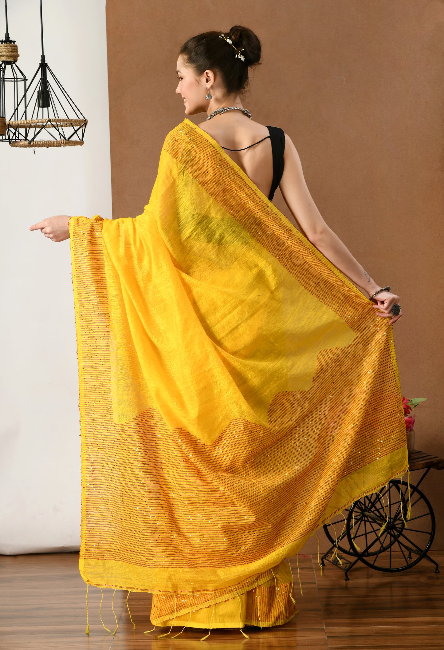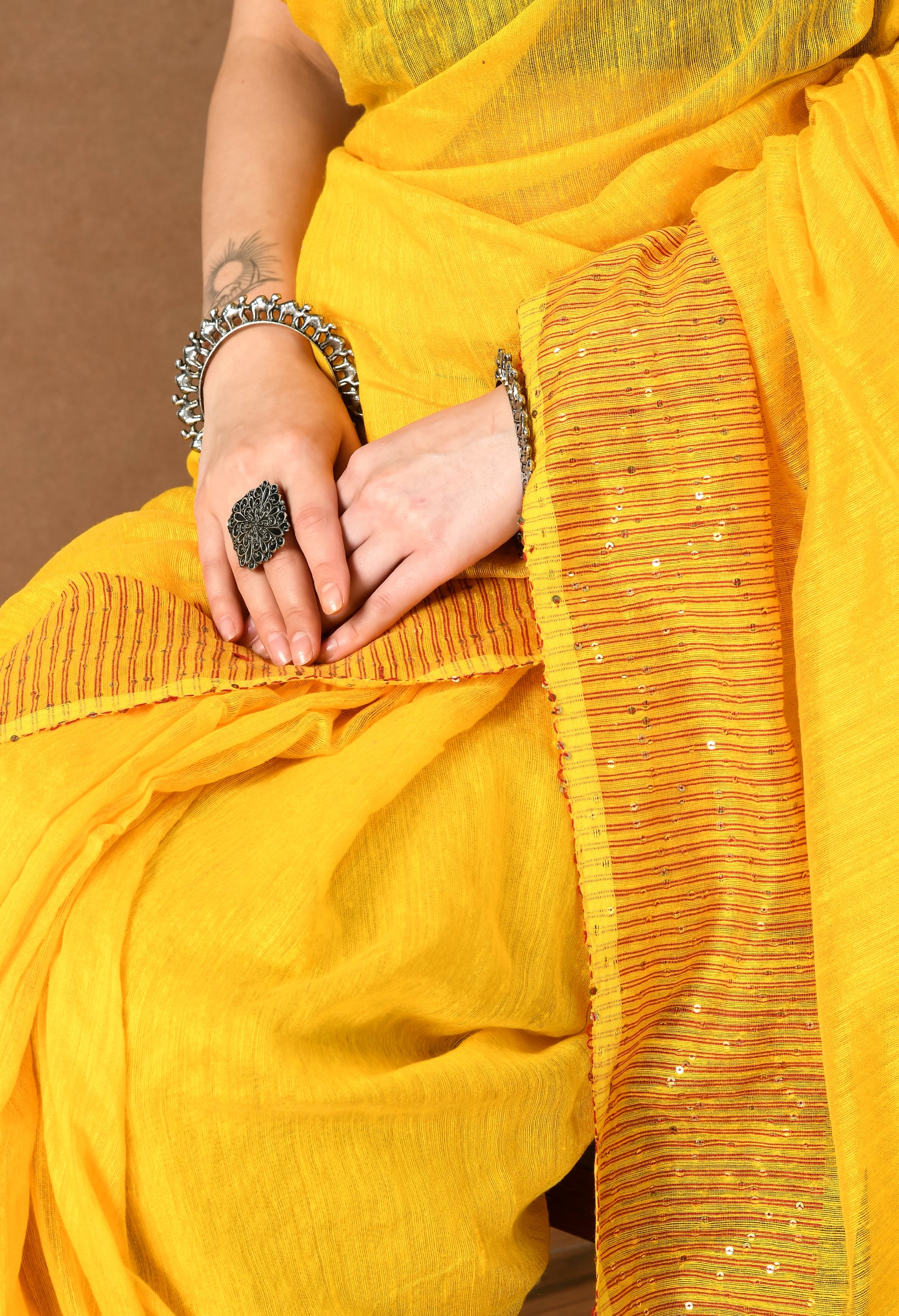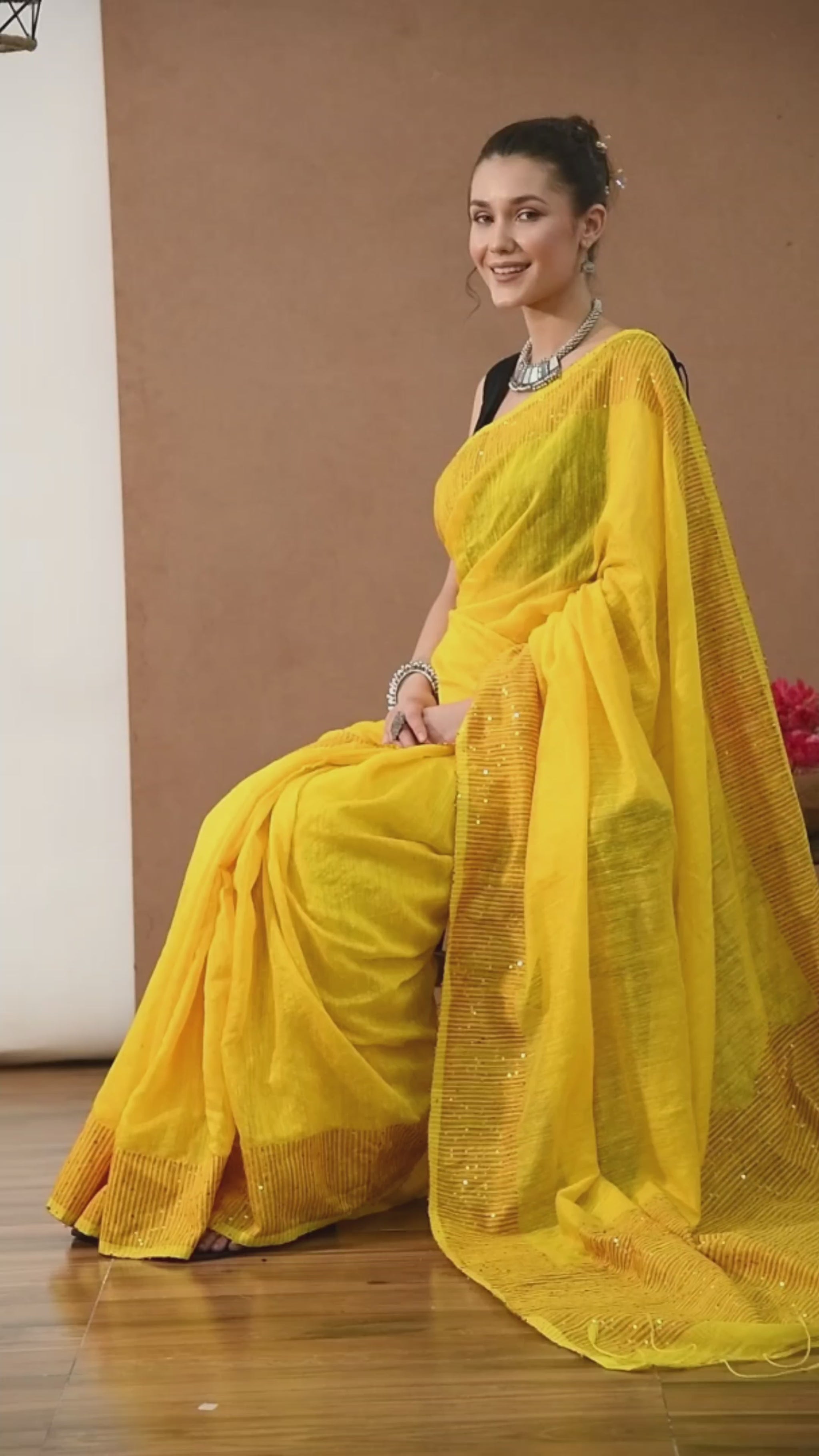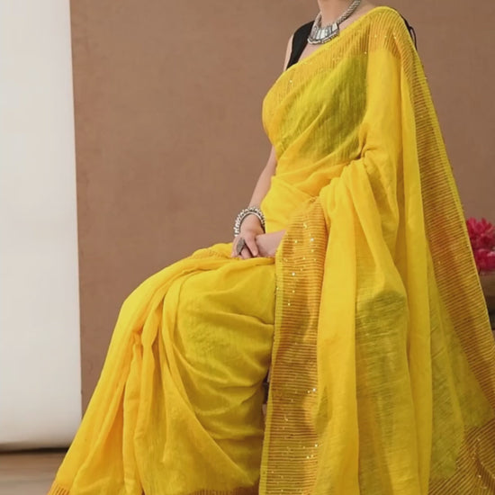 Yellow Matka Silk Saree with Sequins work