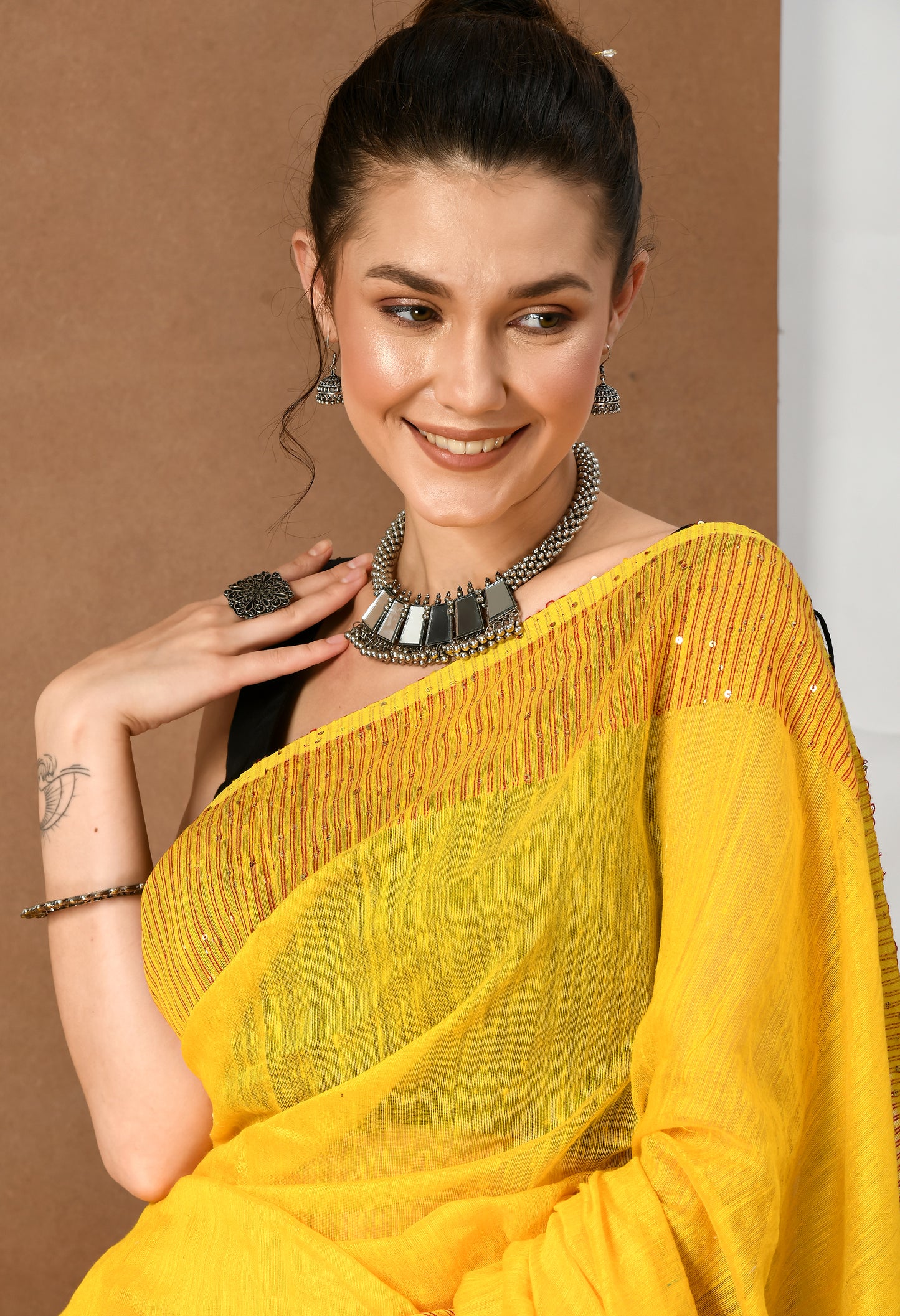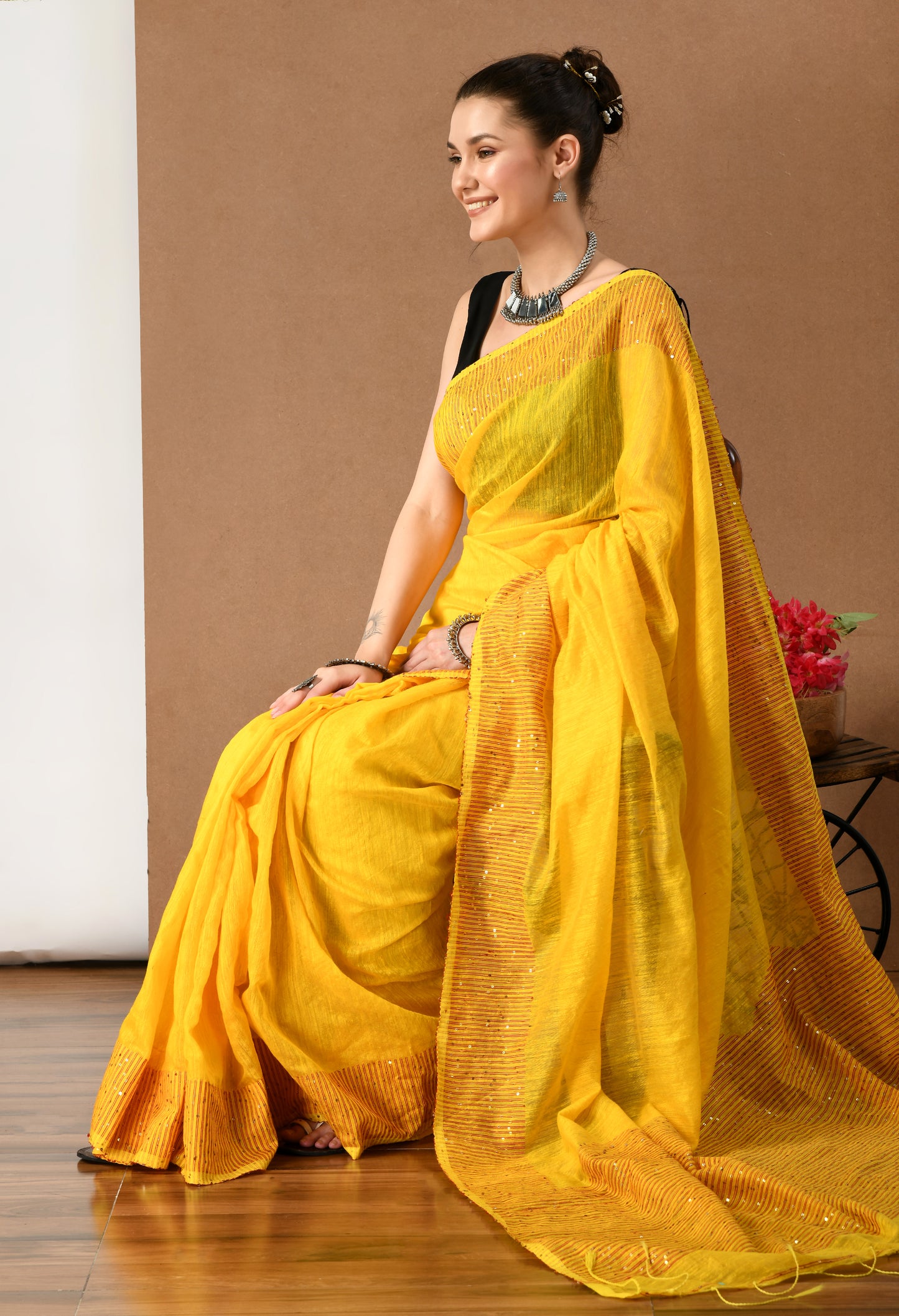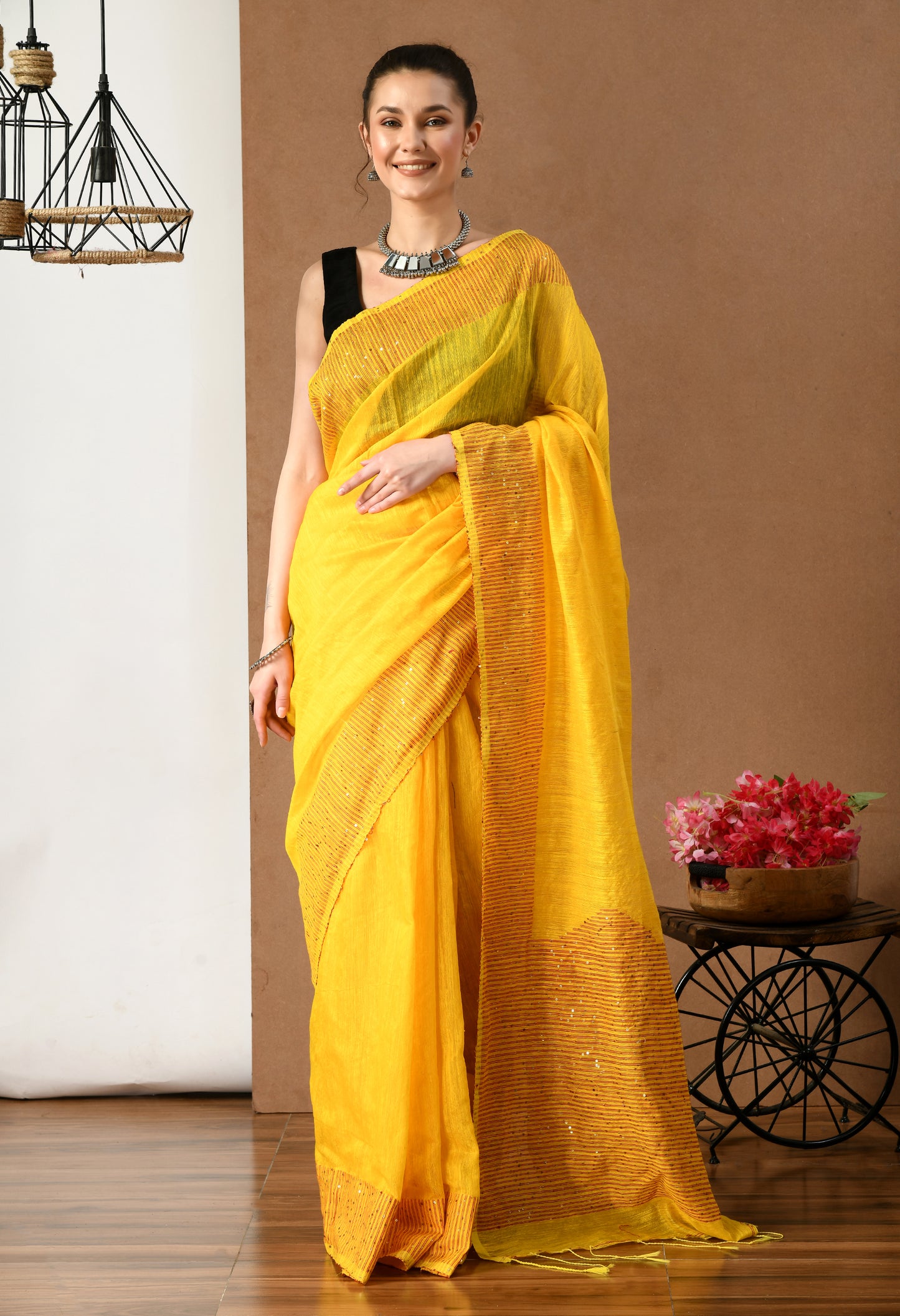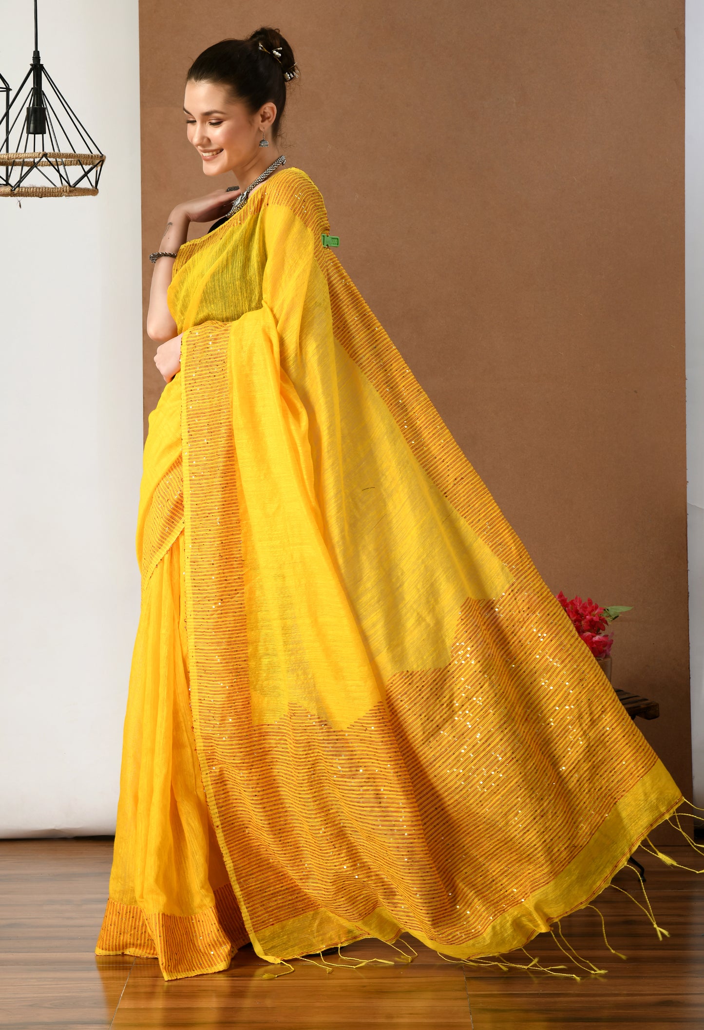 Yellow Matka Silk Saree with Sequins work